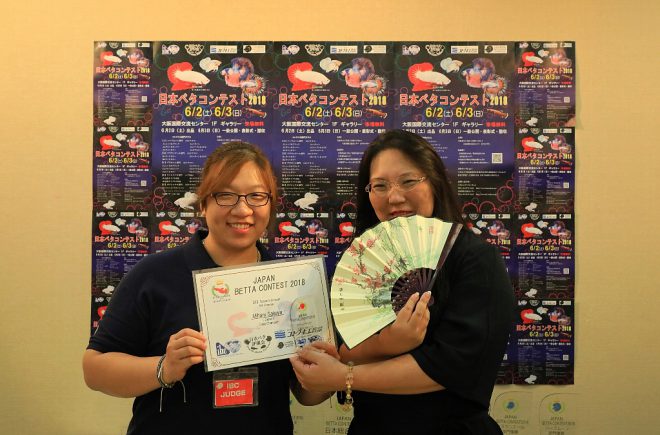 そしてもう一人の見習い審査員が、東京都の白砂裕子さん。そうなんです、日本の見習い審査員なんです!しかも女性!現在、国内ではベタショップ・フォーチュンの石津店長が唯一の公認審査員ですが、数年前から公認審査員を目指して猛勉強中。