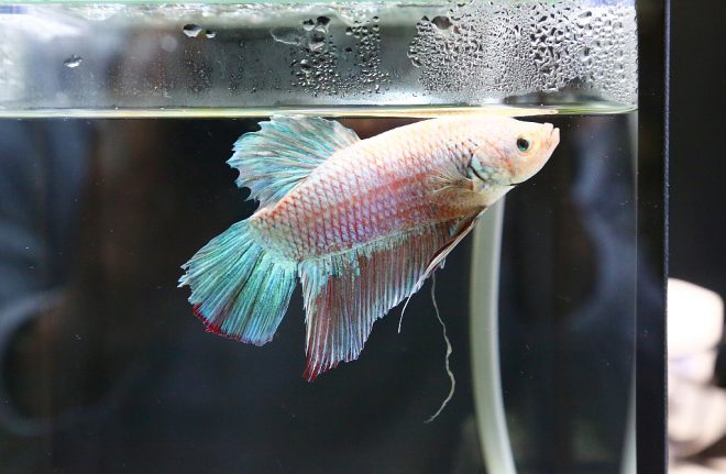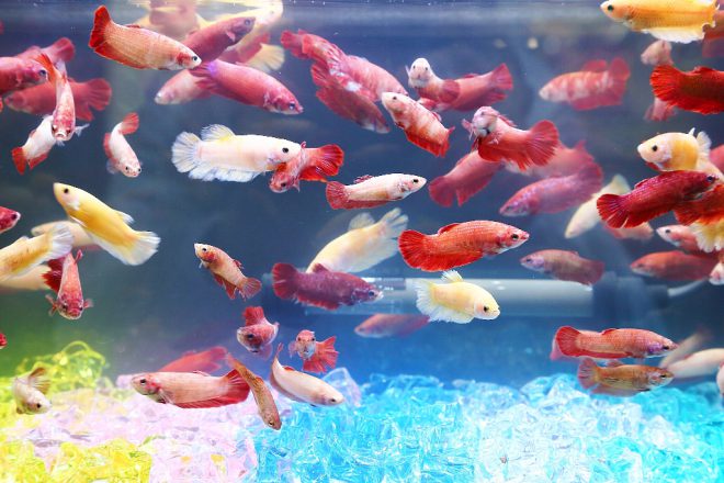 この子たちもフォーチュンさん提供のベタ。「水槽も可愛いサイズだし、これならベタを飼ってもいいね」と言葉を交わす人たちもいました。