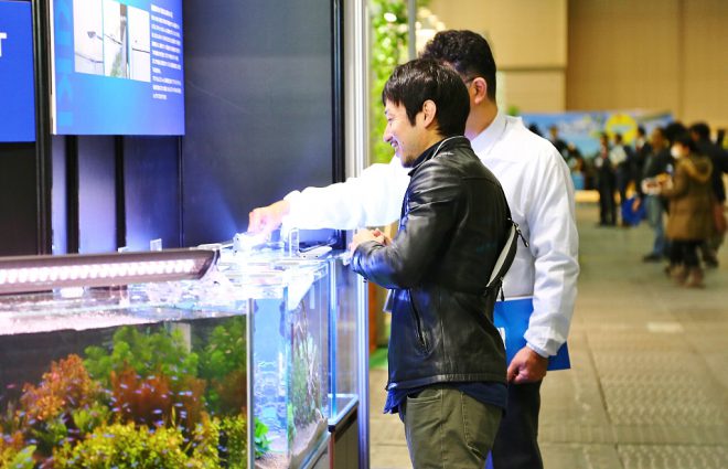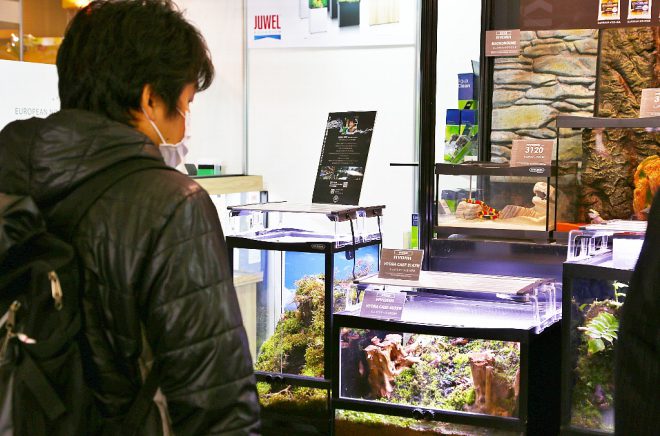 もちろんメーカーや商社の出展だけでなく、日本を代表するトップアクアリストによる水槽コンテストや即興レイアウトライブ、その他SNSを使った記念写真コーナーなど、子どもから大人まで楽しめる仕掛けが盛り沢山でした。