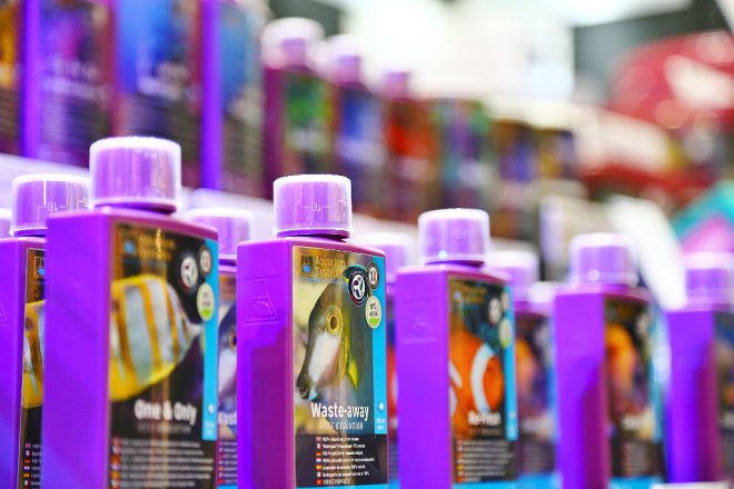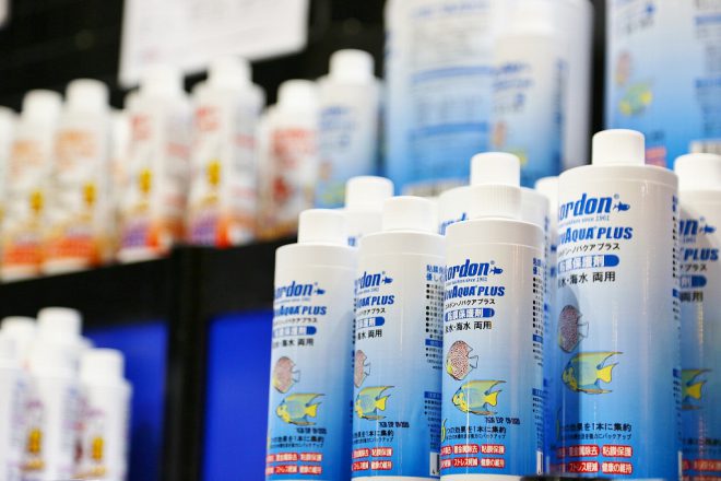 ここでのメインはやっぱりこれ。海水と淡水両方に使用できる中和剤「アムケルプラス」。使用後すぐに魚を入れることができ、しかもバクテリアの増殖を待たずに水質が安定するので、初心者や小さな水槽を中心にアクアを楽しんでいるユーザーにおすすめの商品。これで「アクアは面倒だ」とは言えなくなりそうですね(笑)