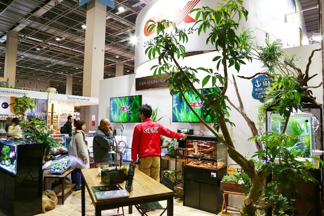 カテゴリーに分けられたブースもとってもみやすく、子どもたちも楽しそう。ユニークな金魚用栄養剤「国産戦隊 きんぎょ5」や新発売された初の昆虫食爬虫類の栄養食「レオパゲル」など、長きに渡って生体を扱う同社らしいコンセプトの展示も印象的でした。
