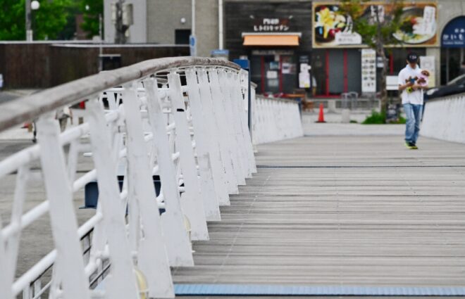 はね橋「ブルーウィングもじ」を渡ります。