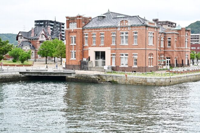 周辺にはレトロな建物がいっぱい。手前のレンガ建ての建物は旧門司税関。その向こうに見えるトンガリ屋根の建物は北九州市大連友好記念館。