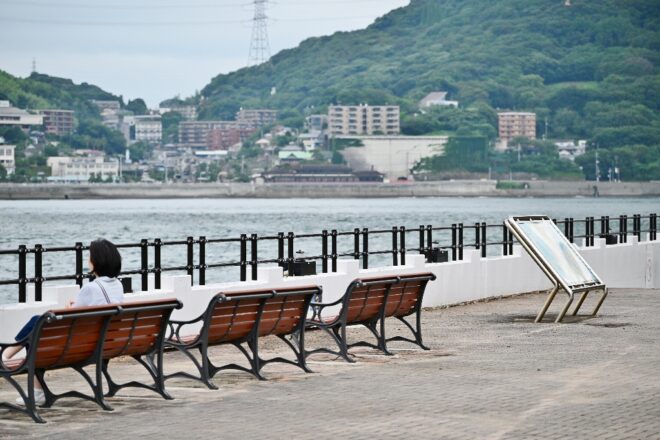 ベンチに腰掛けながら、のんびり関門海峡を堪能。時間が経つのも忘れてしまいそうです。
