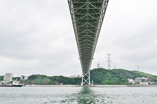 本州(山口県下関市)と九州(福岡県北九州市)との間をS字状に形成されている関門海峡。日本海と瀬戸内海をつなぐ海の要衝であり、古くは源平合戦の舞台にもなりました。一番狭いところで幅が約600mしかなく、しかも潮の流れが早いことで船にとっては日本有数の海の難所でもあります。自然がもたらすダイナミックな水のある風景に触れるべく、海峡散歩を楽しんでみました。