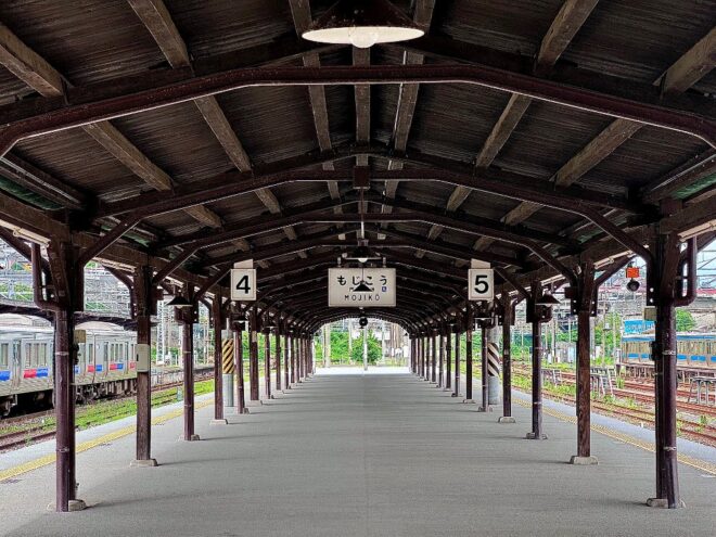 JR九州・門司港駅。どこか懐かしい空気が漂うレトロチックなホーム。