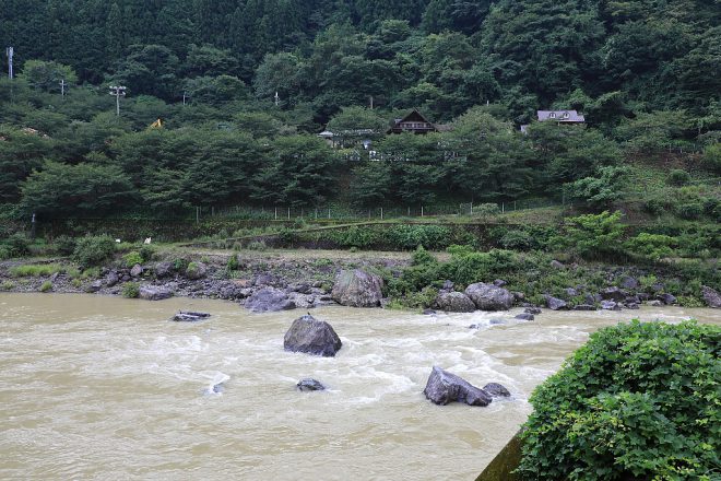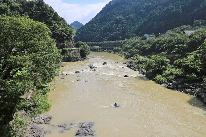 この日は台風が通過した2日後だったせいか、吉野川の水量は多いものの水が濁っているのが残念でした。本来の清流の面影はまったくありません。