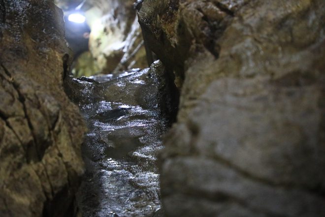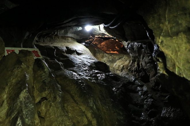 聞くところによると、この日は台風の影響で鍾乳洞の最深部までは入れないそう。「なので今日は20%offで結構です」と、不動窟を管理している女性。おかげで入場料500円のところ、この日は400円で入れました(笑)。