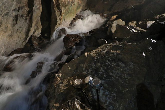 おお~、激流が目の前に!ごうごう音を立てて流れています。大雨の後だけにちょっとビビリました(笑)。ここが「不動滝」。それにしても、こんな地底でごうごう滝が流れてるなんて絶景すぎます。