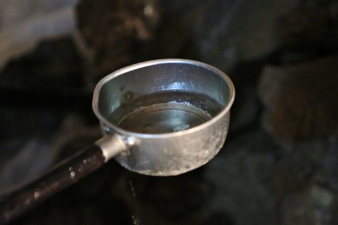 杓を使って滝の水を汲んで飲み干してみると、なんとまろやかな水なんでしょう。不動尊のやさしさが伝わってきた気がしました。