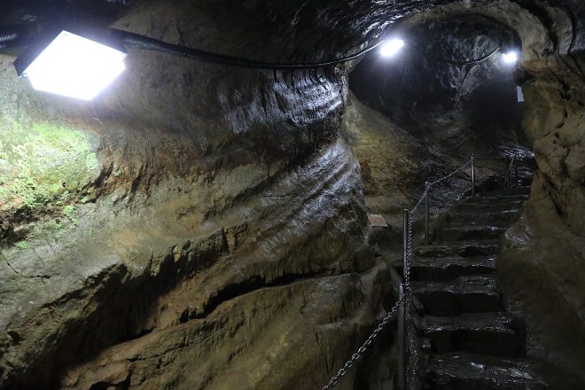 今きた道を逆戻りして外に出たとたん、またまた30度以上の世界に逆戻り。しかも目の前には、帰路となる階段が。わかっていたこととはいえ、鍾乳洞ならではのギャップは辛いものがありました(笑)