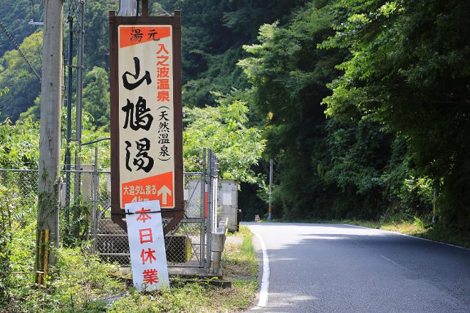 野趣あふれる露天風呂が評判の入之波温泉も、今日はお休みでした。それにしても、なぜここにだけ温泉が湧いているのでしょうか、結局それも謎のままでした(笑)