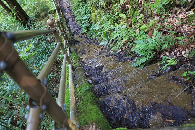 時々ツルッとなりそうな足元にも注意して。真っ昼間なのに薄暗い個所がいくつもあります。それにしても、森林のにおいが心地よくて、もうフィトンチッド満載(笑)。