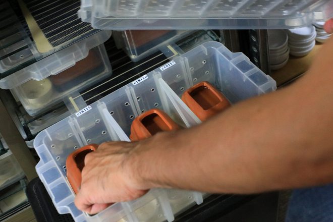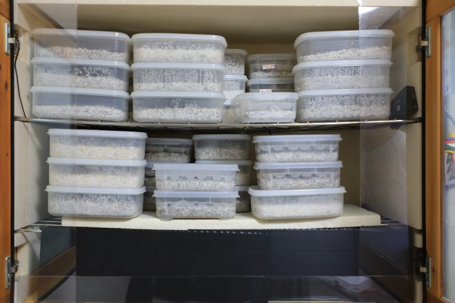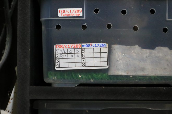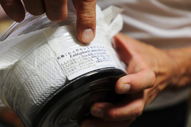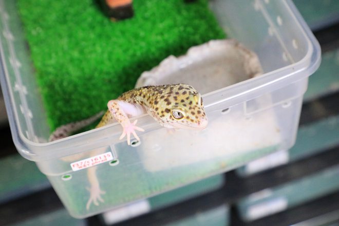 その容器には、ちゃんと生体ごとにデータが細かく刻まれています。「いいレオパに出会うためには、出所や生まれた日がきちんと書かれていることが必須条件です」。爬虫類も野菜も、生産者の顔がみえるということはやっぱり大事なことなんですね。