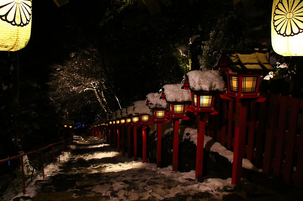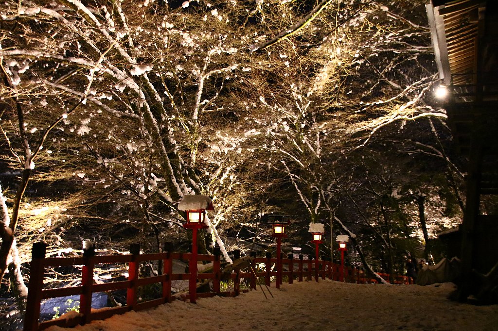 現在貴船神社では、「雪日限定」でライトアップされています。
