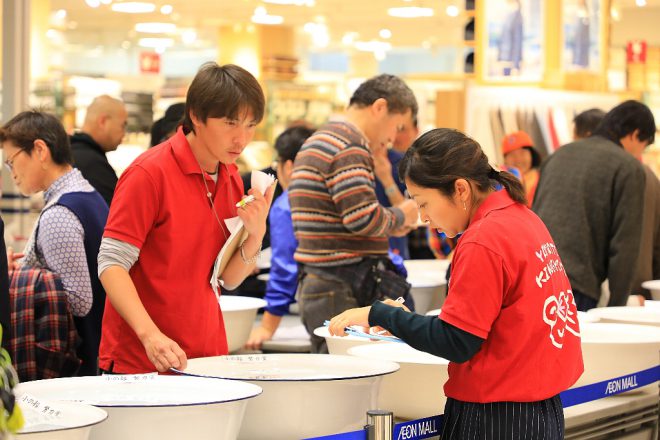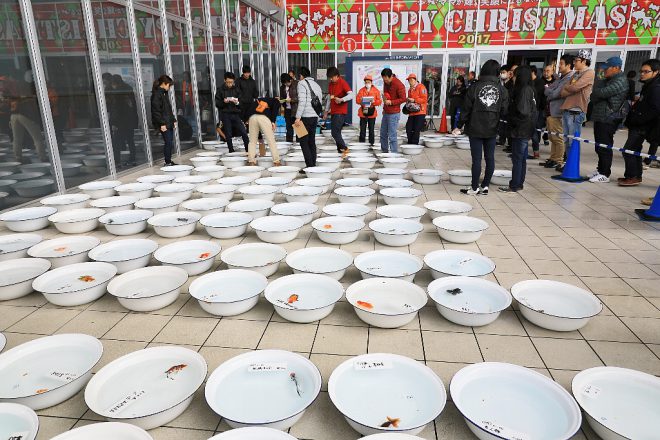 1階メインフロアでは、午後3時から先着100名に金魚がプレゼントされるとあって、早い人で1時間前から並ぶ人たちも。午後3時になったとたん、アッという間になくなってしまったのは、いうまでもありません(笑)