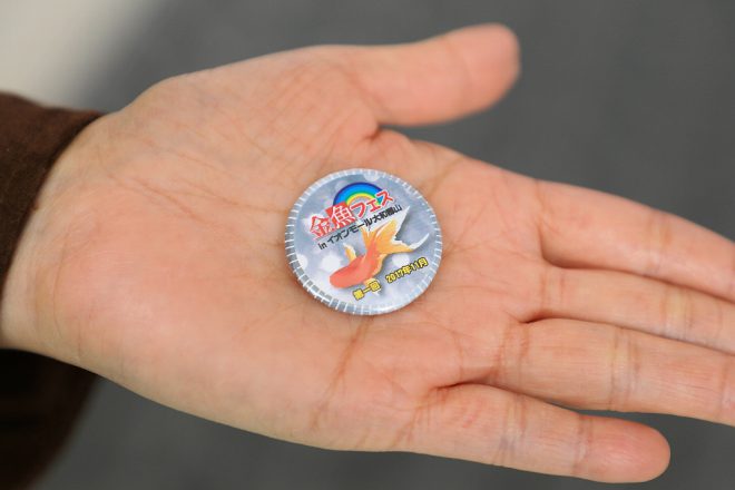 「キワメテ!水族館」もオリジナルステッカーをお祝儀に(笑)。祖父の影響を受けて中学生のころに金魚と出会って以来金魚ひと筋だそう。「大和郡山は池や養魚場がたくさんあって、楽しくてうらやましいです」と感想を語ってくれました。ぜひまたお越しを。いっそのこと引っ越してきたらいいのに(笑)