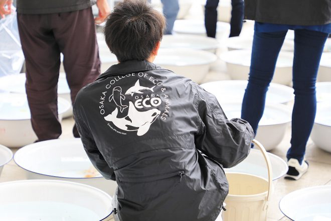 以前、取材でお世話になった大阪ECO動物海洋専門学校の学生さんたちもお手伝い。