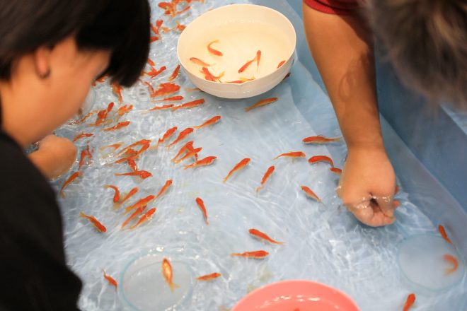 この日は、競技以外に初心者向けの金魚すくいコーナーも。もしかしたら、この中から将来のチャンピオンが生まれる可能性だってあるんです。イオンの金魚すくい大会、ずっとずっと継続していってもらいたいものです。