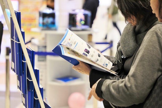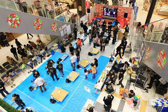 会場の1階メインフロアには多くの人が。金魚ファンもたくさんいますが、ショッピングを楽しむ家族連れが思わず立ち止まる姿も少なくありませんでした。