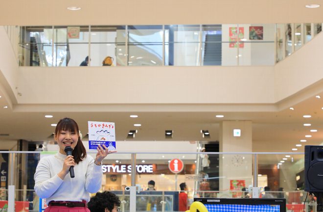 2階フロアでは、絵本の読み聞かせコーナーも。金魚をテーマにした絵本中心で、数組の親子が、「話のオネエサン」に耳を傾けるひととき。いつもの日常とは違うのほほんとしたムードが、なかなかイケてました。