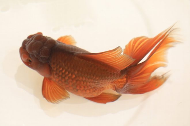 小の部で1位に輝いたのは、目黒尚介君(埼玉県)。五色朱文金を出品した、高校2年生。去年の金魚日本一大会で特別賞を受賞しましたが、「優勝は初めてなのでうれしいです!」と喜びを語ってくれました。さらに、大の部でも五色和金が2位という好成績。賞品でもらったブラインシュリンプについて、「これって高価なんですよ!色々考えると、今回の旅費が出ました(笑)」。こういう若い人がアクアに関心を寄せてくれるっていいですよね。目黒君、本当におめでとう!