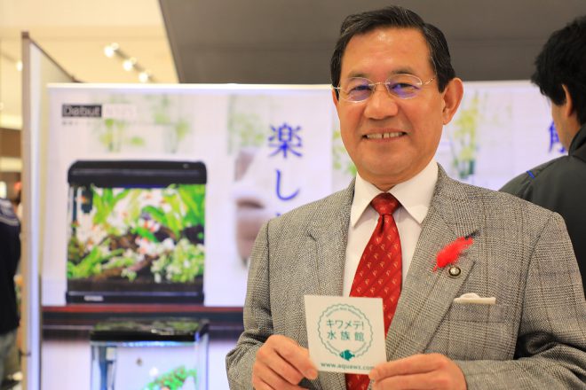 あ、上田市長!ようこそ金魚水族館へ(笑)。この日はほかにも色々とイベントに出席しないといけないとかで、多忙なスケジュールの合間を縫ってこられたそうです。