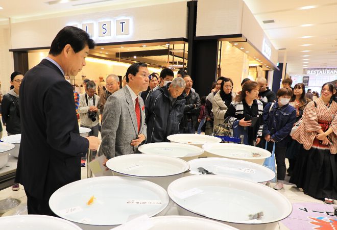 3人の審査員もそうそうたる顔ぶれ。弥富や浜松などからこの日のために大和郡山へ。この光景をみるだけで、単なる商業施設の一イベントではない、全国レベルの品評会であることがよくわかります。