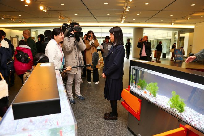 なおセレモニー会場でお披露目された水槽は、地元の柳町商店街の某所に3月に入ってから改めて設置される予定です。どんな感じで設置されるのか実に楽しみです。きっと商店街の目玉になること間違いないでしょうから、まちの活性化につながればいいですね。