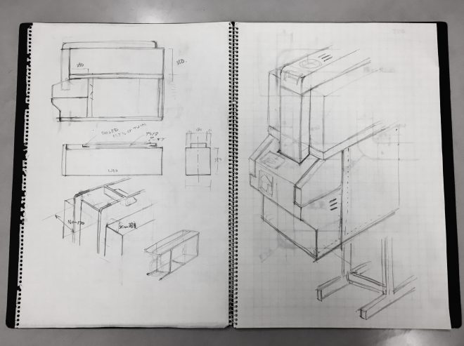 構想段階で、何度も何度も描かれたラフスケッチの最終形。製品化をイメージして、だんだん現実に近づいていきます。もうスタッフに迷いはありませんでした。たとえ駅員さんに怪しい目で見られようが、大人げないと言われようが(笑)。「本物と見間違うほどのものをつくってやろうやないか!」。力強い決意のもと、大人たちの本気モードにスイッチが入り、プロジェクトが本格的に動き出したのでした。