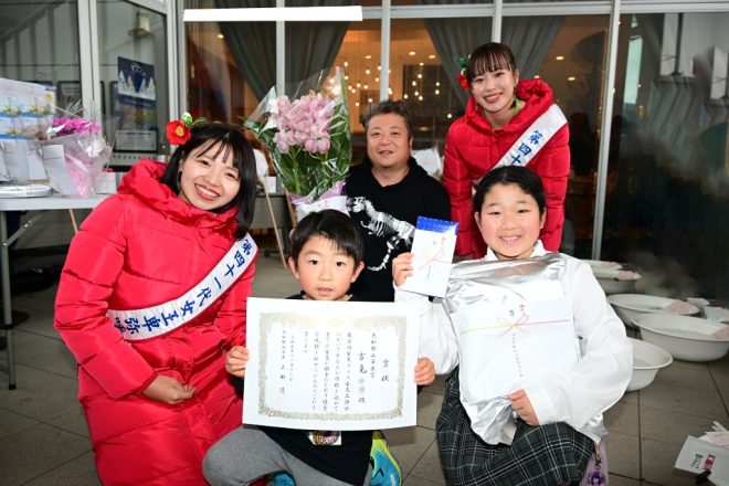 表彰式では、2人のお子さんに第41代女王卑弥呼も交えてファイブショット。「吉見さ~ん、もっと笑ってよ~」のリクエストに答えてくれてありがとさんでした。