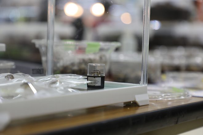 東京にお住まいの三浦真樹さん。まるで俳優のような名前なのに、その正体は超虫マニア(笑)。出品物もズバリ虫。ダンゴムシやらワラジムシやら、容器の中にたくさんうごめいてます。しかもすべてがブリードもので、コウレプで虫を出品しているのはこの人だけなんです。虫だと聞いて、てっきり生き餌を扱ってるのかなと思ってました。失礼(笑)!