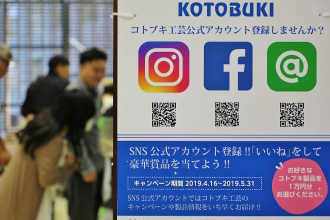 初の試みといえば、これも。すでに始まっているKOTOBUKIのSNSキャンペーン第2弾。公式アカウントをホームページ経由で登録すれば、後日抽選でアクア商品が当たるというものです。ブースではQRコードが展示され、手軽にユーザー登録する来場者もすくなくりませんでした。なお、このキャンペーンは5月31日(金)まで。当日会場に来られなかった人も、まだまだOK。詳しくはこちらをどうぞ。
