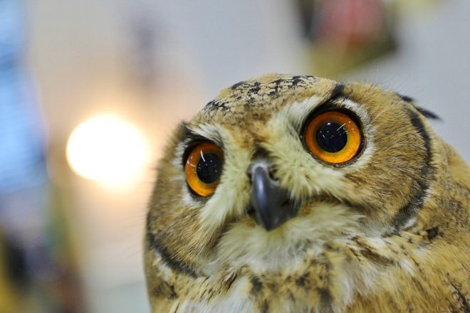 聞くところによると、生体だけでなくアパレルなんかも販売しておられるそうで、これは興味津々。「いやいや、店の2階に置いてあるだけですよ~」って、2フロアもあるじゃないですか(笑)!そんなやりとりをじっと聞いていたのかどうかは知りませんが、フクロウ君の目がとっても綺麗でした。