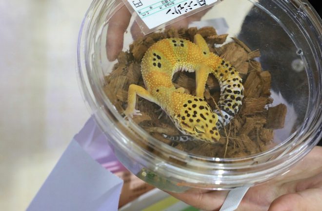 最近の傾向としては、ニシアフリカトカゲモドキが人気なのだとか。ああ、そういえば去年もそんなレプ女子がいましたっけ。特徴としては、見た目はやや地味で性格も地味なのだそう。なぜそんなに人気があるのか、レプ女子でないとわかりませ~ん(写真は昨年のコウレプより)。