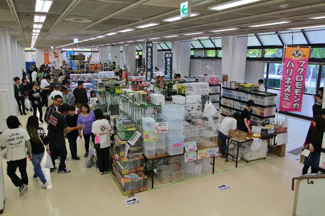 今回はFLY MIXのカメ用サンプルを配布していたこともあり、「うちにもカメがいます」「子どもたちが飼っています」という声をよく耳にしました。そんな中、ついつい話し込んでしまったのが、姫路からお越しの独身女性。カメ飼育歴は何と10年。リクガメほか、ニホンイシガメとクサガメの雑種・ウンキュウなどの3匹には、それぞれ讃太(さんた)・渚沙(なぎさ)・仙之祐(せんのすけ)と、ちゃんと名前もつけるほどの可愛がりよう。「犬や猫のように“かまって感”がないのが楽でいいんです(笑)。でも冬眠から目覚めた時は、ちゃんとごはんを欲しがってくるんですよ。そんなところがまた可愛いでしょ(笑)?」。