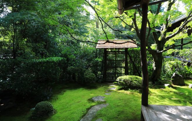 驚いたのは、こんな市街地のど真ん中でも苔が美しく際立っていること。すぐそばに山がある祇王寺や地蔵院とは、明らかに環境が異なります。だからでしょうか、ほかのお寺よりも毎日水を欠かせないのだとか。苔を育成するのは簡単なはずがありません。