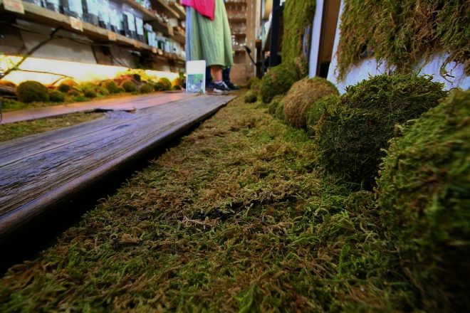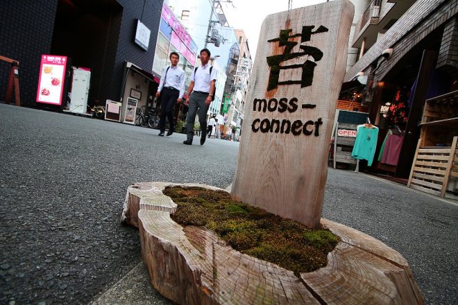 ところ変わって、こちらは大阪ミナミ屈指のおしゃれな街・南船場。ファッションやグルメの発信地でありながら、ひときわ異彩を放っているのが苔を専門に扱った苔インテリアショップ「moss-connect」(モスコネクト)です。苔に関することなら何でもオールマイティー。苔玉、資材・用土などの販売のほか、ワークショップも定期的に開催し苔女子にも大人気です。