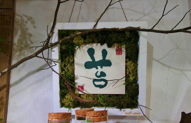 まるで書道の一筆書きのようなアートがモシュ印。そう、モス(苔)と「御朱印」を引っかけた、いかにも女子受けしそうな造語。御朱印も今や空前のブーム。ちなみに、モシュ印に使われているのはドライモスといわれるもので、これ以上成長しない種類の苔なのだそう。コケ寺リウムもモシュ印も、苔を知り尽くしたスペシャリストならではの作品ばかりです。