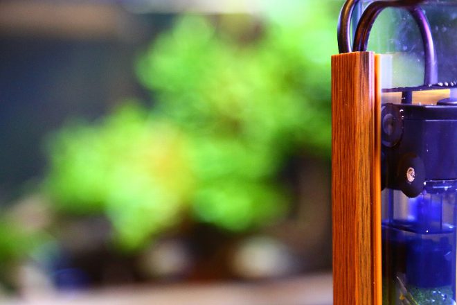 水槽をみると、KOTOBUKIのコーナー式水中ポンプが横に置かれているだけ。実にシンプルです。これなら誰でもすぐに飼えそうな気がします。
