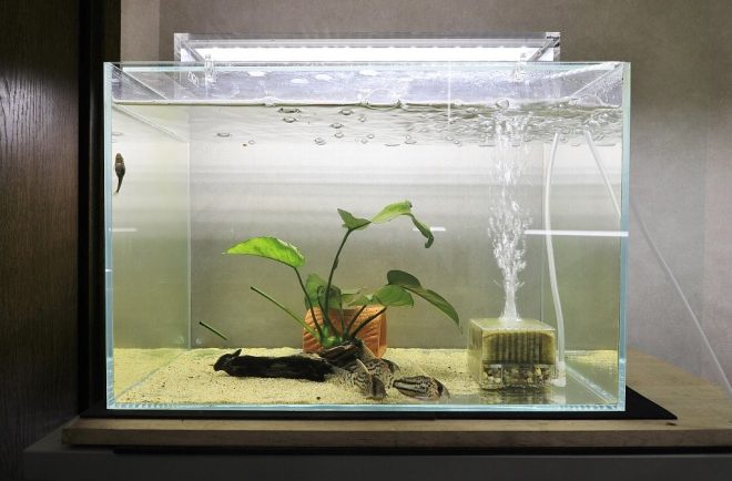 正真正銘のコリドラス専用ルーム。コリドラス以外にも、アピストグラマやプレコ、フグなども。もちろんそれぞれの水槽には、お掃除屋さん・オトシンネグロも待機中。