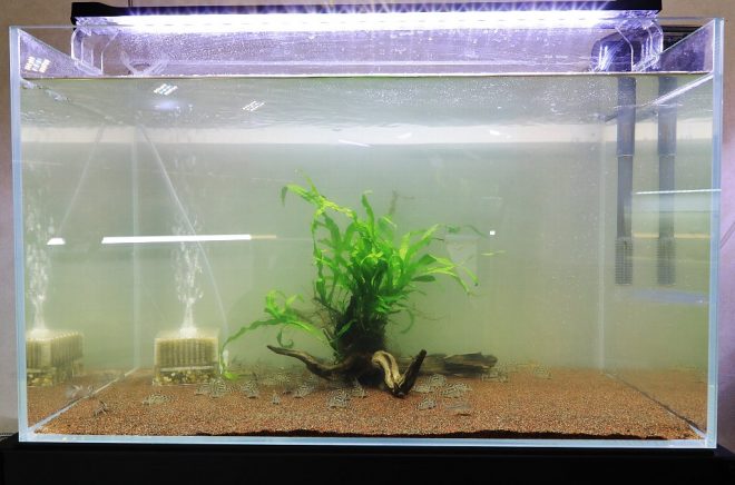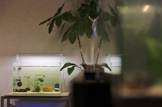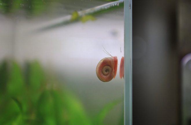 かたつむりのように見えるのは、れっきとしたお掃除屋さんのラムズホーン。「でも油断していると、すぐに増えすぎてしまうんです」。いくら繁殖好きだからといっても、由美さんだって悩みはあるのです(笑)