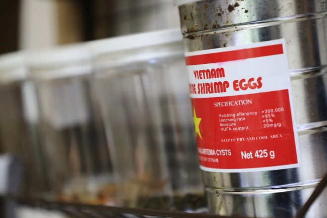 ブラインシュリンプにはこれを使っています。ベトナム製で、孵化率何と100%なのだそう。しかも普通のブラインシュリンプより小さいので、稚魚でも難なく食べられるそうです。これはオススメです。