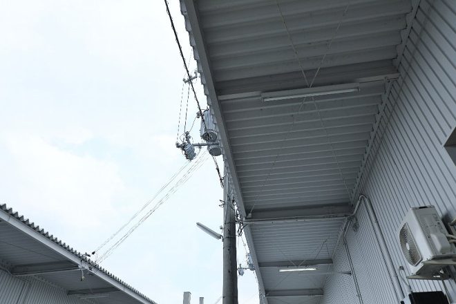 こちらのエリアは、完全屋外。工場のすぐ東側。さきほど窓から見えていた田んぼが一面に広がり、遮るものは何もありません。