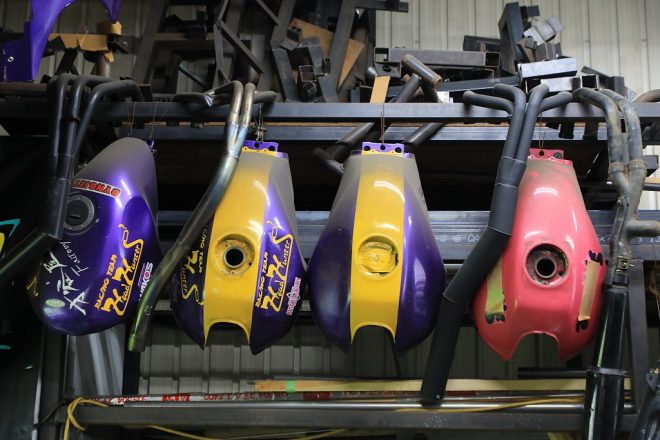 落ち着きを取り戻して、工場内へ。主にマフラーを始めとするバイク部品の製造が行われています。バイク好きにはたまらない、ちょっと油のにおいがするシチュエーション。最近は、バイクの部品も最近は需要が薄れてきたとのこと。簡単な改造すらできないほどメーカーの縛りも。機会いじりの得意なバイクマニアにとって自分なりにカスタマイズするのも、バイクの大きな楽しみのひとつでした。時代の変化を感じずにはいられませんね。