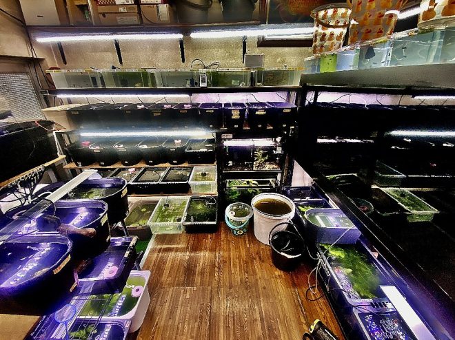 お気に入りの品種は、ブラックダイヤリアルロングフィン。理由は?「うーん、模様がハッキリしていてカッコいいところかな。でもBDRLFに限らず、との種類も好きですけどね」。