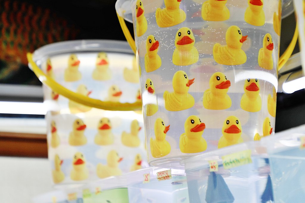 180㎝水槽にいるのは、エンドリケリー。推定年齢25才。ということは?「そうなんです、工場ができたころからの相棒なんです」。経営者としての辛苦やメダカ飼育のノウハウを25年も見つめてきたケリー君。飼育の主体がメダカに移っても、きっと君だけは最後まで一緒だからね。