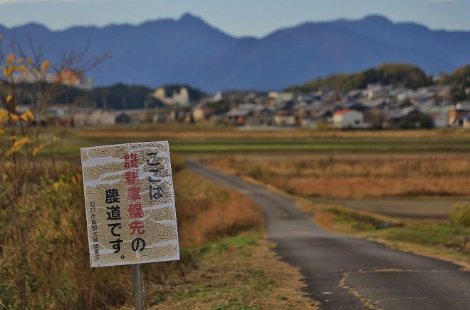 周りは農業用地らしく田んぼが多く、はるかかなたには鈴鹿山脈の険しい稜線が。山からは鈴鹿おろしが吹き、この冬の寒波では雪国さながらに雪化粧しました。