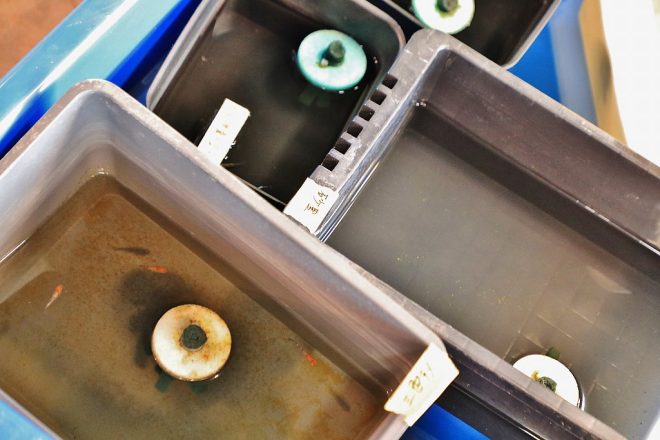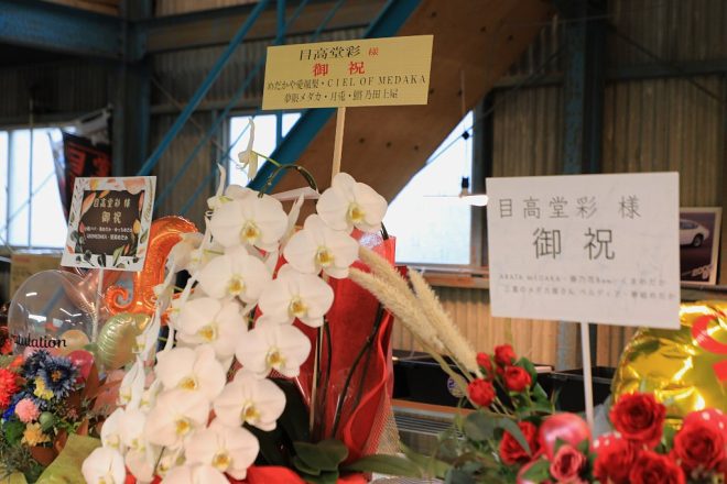 オープンして間もないこともあり、普段から交流のあるメダカ愛好家から届いたお祝いが色々と店内に。「だからこそ、今年1月の大寒波による想定外のダメージがきつかったです。もうダメかと思いました。こんなにしてくれたみなさんのためにも、もう一度奮起しようと決意しました」。まさに想定外。自然災害によるダメージこそ辛いものはありません。