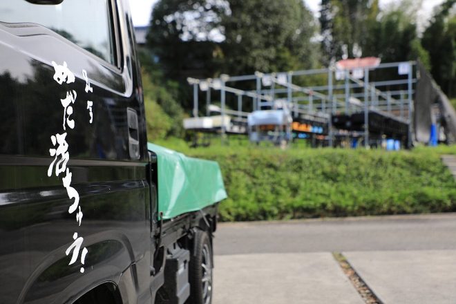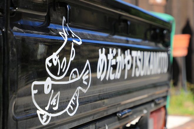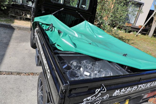 黒いメダカにちなんで、運搬用のトラックまで黒!